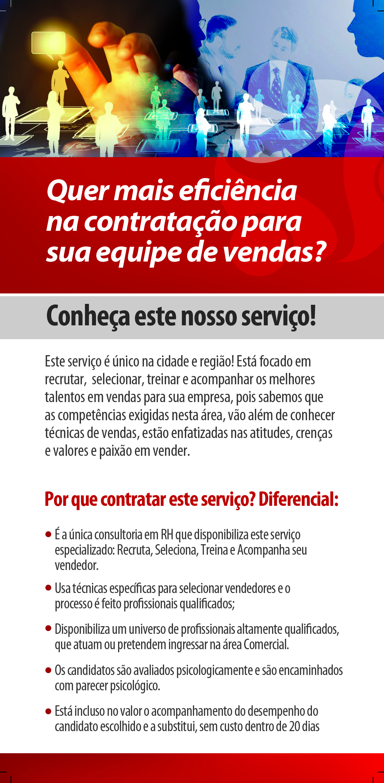 Recrutamento, Seleção em Vendas e Treinamento e Acompanhamento Especializado em Vendas